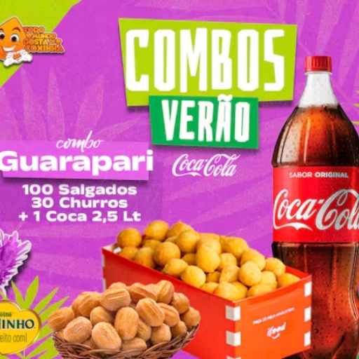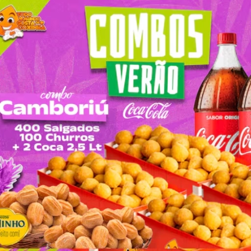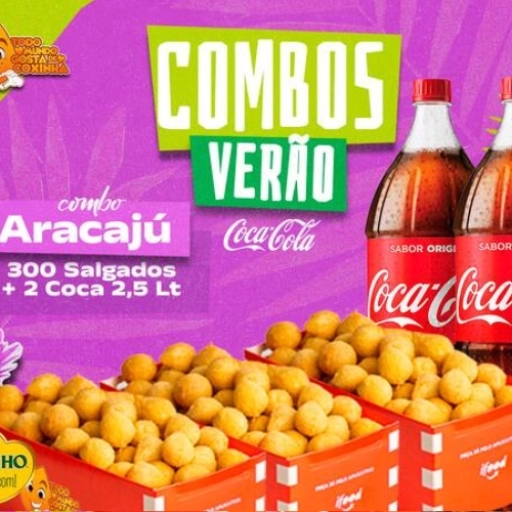 300 mini salgados + 2 coca-cola 2l | Se atente ao tamanho do salgadinho que pode variar de 14g a 18g