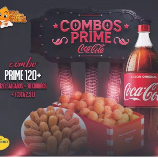 120 Mini Salgados + 30 baby churros + 1 Coca-cola 2l | Tamanho do salgadinho 18g
