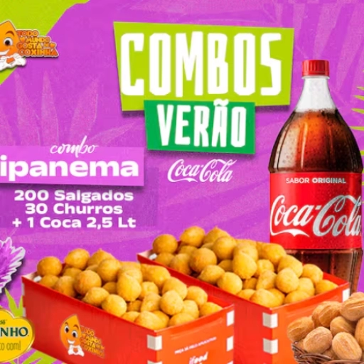200 mini salgados + 30 baby churros + 1 coca-cola 2l | Se atente ao tamanho do salgadinho que pode variar de 14g a 18g