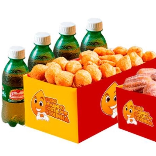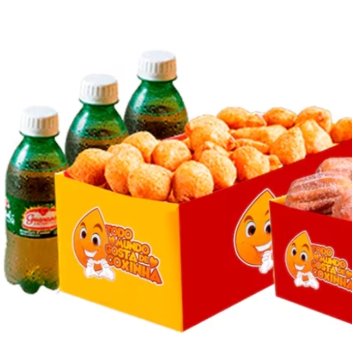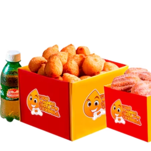 400 mini salgados + 100 baby churros + 2 coca-cola 2l | Se atente ao tamanho do salgadinho que pode variar de 14g a 18g