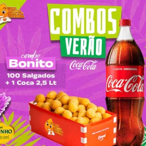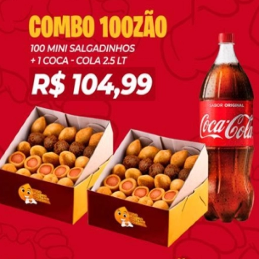 100 mini salgados + 1 coca-cola 2l | Se atente ao tamanho do salgadinho que pode variar de 14g a 18g