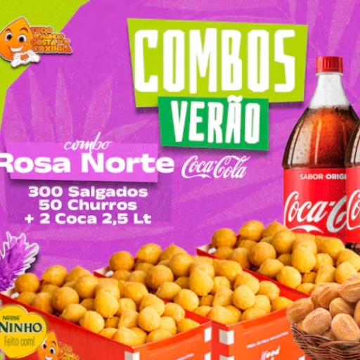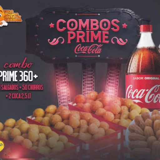 300 mini salgados + 50 baby churros + 2 coca-cola 2l | Se atente ao tamanho do salgadinho que pode variar de 14g a 18g