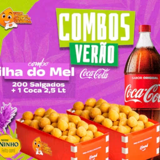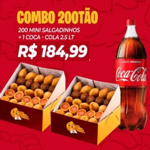 200 mini salgados + 1 coca-cola 2l | Se atente ao tamanho do salgadinho que pode variar de 14g a 18g