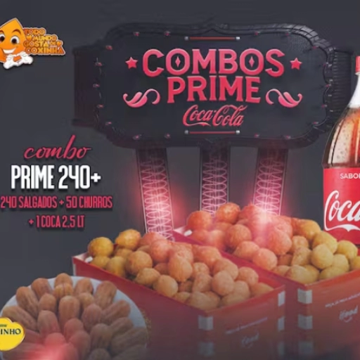 240 Mini Salgados + 50 baby churros + 1 Coca-cola 2l | Tamanho do salgadinho 18g